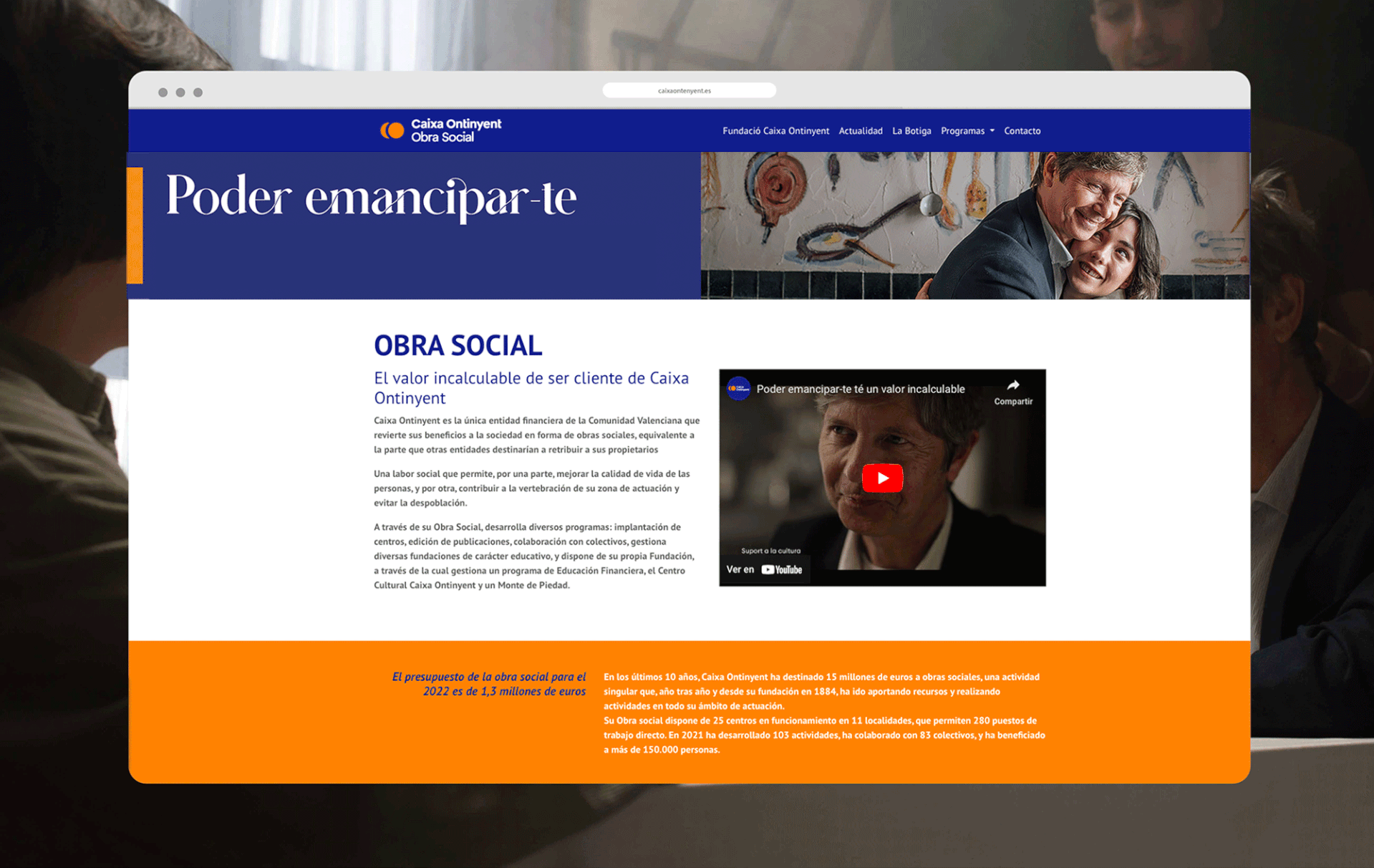 De este modo, conseguimos acercar Caixa Ontinyent a la generación más joven. Un público que se caracteriza por su compromiso social al que debíamos mostrarle lo mucho que tiene en común con Caixa Ontinyent y su obra social.